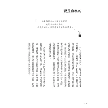 唯有母親,必須先愛自己,才能堅定不移地牽起孩子的手。不必給答案,只要好好觀照自己的人生,孩子必將學會面對生命的態度。
