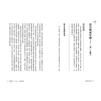 ◎以【夢與潛意識】、【永恆少年】、【陰影】、【個體化】四大篇章,釐清【童年、青少年、中年、以及老年】這四個人生階段的心靈任務。