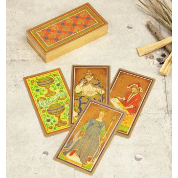 牌面飾有優雅的邊框裝飾與金色金屬油墨,也重現了維斯康提和史佛薩家族成員當時穿著的服飾,從中能觀察到文藝復興時期義大利上流社會的風俗與習慣。其精美的圖案有著不為人知的神秘力量,常能給人帶來奇妙的暗示和直覺。