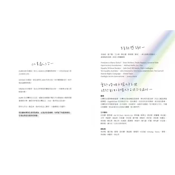 這是一場扎扎實實要聚集眾人之力才能合作實現的運動,三十年來台灣社會和同志社群的起伏與挑戰,絕非用三言兩語能夠呈現,此書嘗試從大平台的角度出發,將2016-2019這三年多來的日子所經歷的點滴用影像與文字稍加紀錄下來,近四年是不短的日子,紙短情長,要說的故事太多,或不夠完整,只盼我們都能記得這段共同努力的、前所未有又難以被遺忘的歷史。