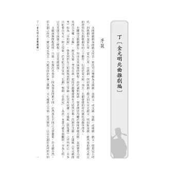 重要作家作品之外,又舉石君寶、李直夫、鄭廷玉三人論其帶有金代印記之雜劇;高文秀、李文蔚二人以論其水滸劇;用此以使金元雜劇之論述在作家及其題材上校具周延。