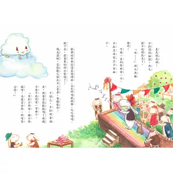 在彩虹谷裡,美好的天氣,和善的居民,還有一隻可愛的雲怪獸,到處笑聲與驚喜,這是作者為孩子創作的天堂。