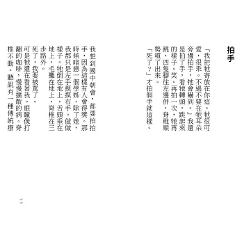 一整個晚上我在廚房裡拼湊著火/試圖提出記憶的形狀/身旁的名字都燃燒起來了/而我自然來不及打開水龍頭/這裡和那裡都是火/這裡和那裡都是我(〈屬火的人〉)