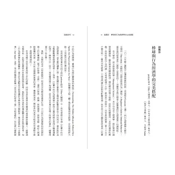 在棒球賽場上,其實跟我們在經濟學或是生活環境中一樣,各個層面都隱藏著我們未曾細想過的行為心理學,大從新人選秀(就像是投資商品),小至何時該揮棒(你可以想像成是何時該決定股票的進出場時機),隨著上述的決策變得愈來愈複雜、愈來愈需要資料數據的輔助,瞭解其背後的思維和運作。在本書中,就是以前所未見的方式來分析一個非常基本的問題:到底那些決策者在想些什麼?如果我們的大腦思考判斷,往往會在不經意的時刻讓我們產生錯覺,但我們該怎麼知道自己「想錯」了呢?