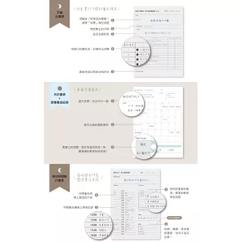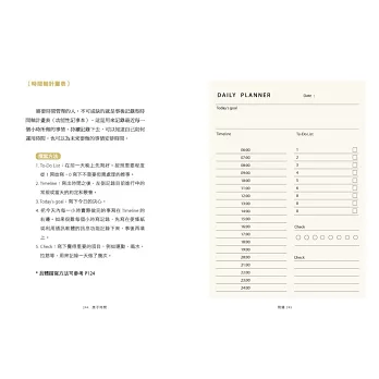 每天睡前,我會仔細看一下我的功能性記事本,上面有每小時的記錄,可以檢視當天哪些時段的專注力最高、最適合做哪些事,以及在哪些時段和哪些事情上,我浪費了時間。