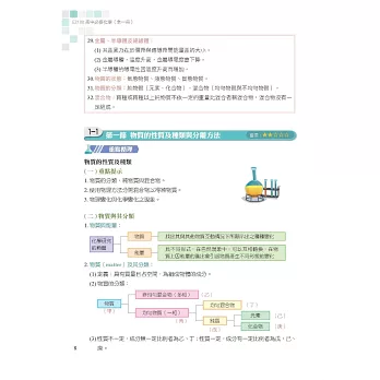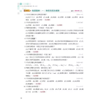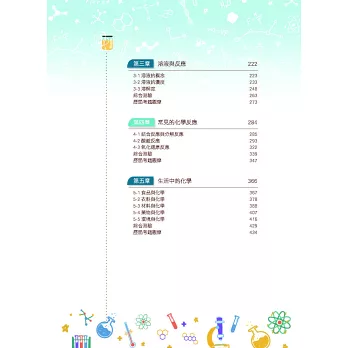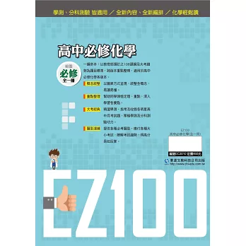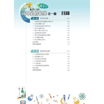 108課綱必修化學將103課綱數學各章節加以切割,簡單的章節及重點講述放在必修化學前幾冊,較為困難的部分放在選修化學裡面。在高一、高二先將簡單的重點學會,到高三才會事半功倍,易考高分。化學需要每天練習推理,理解每一重點及定律,熟能生巧,自然而然各種題型就能領悟透徹,本參考書每一題型均有精選範例題,同學如果每題均練習與了解,相信在每一場考試均會得高分。