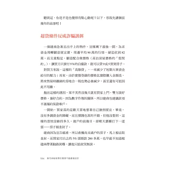 我特別喜歡本書副題中「人性陷阱」的說法。買賣的本質,其實是一場一場的博奕,標準的人性試煉場。房地產因為單價高,一般而言,必須靠舉債取得,等於預支未來的收入,因此交易起來得失心更重,對人性更是加倍考驗,很像是一面喜怒哀樂的人生照妖鏡。
