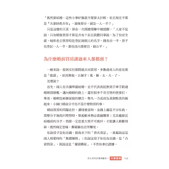 人生的這張牌桌,要做的選擇本來就不少,但房地產應該是難度最高的項目之一。如何讓買房這件事,成為幸福人生的快樂配方,而不是相互拖磨的負債,這不只是理財的功課,更是智慧的修練。這堂課,很難選修,對大多數的我們來說,應該都是必修課,逃都逃不掉。