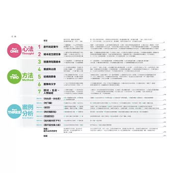 最後的附錄則面對作品「之外」的經驗分享,像是如何與編輯工作、怎麼和出版社互動、出書後怎麼面對評語,和作品延伸授權等等。