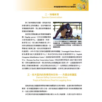 本書為臺灣第一本以東馬婆羅洲熱帶雨林為主題的生態環境專書,透過學者專家、攝影師,以及東馬在地保育團體與大自然守護者,以多元角度完整介紹奇特美麗的東馬婆羅洲熱帶雨林。全書共11篇,內容豐富、圖文並茂,包括生機盎然的混合龍腦香原始林(Mixed Dipterocarp Forests)、壯麗的地理景觀,東馬各族群的人文歷史、經濟發展,以及珍貴稀有的動植物,如長翅膀的果實,世界最大的大花草(Rafflesia)、有「豬籠草王冠」美稱的維奇豬籠草(Nepenthes veitchii)、體型碩大的紅毛猩猩、現存最小的馬來熊等,還有最重要的物種保育及雨林保護區。