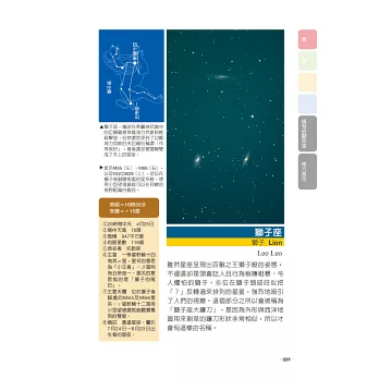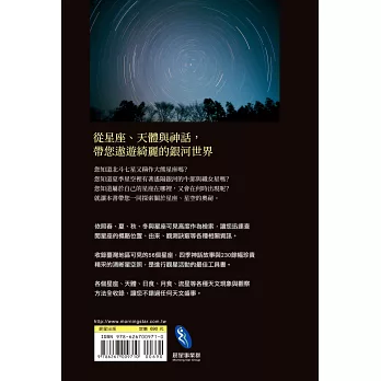 在星星和星星間暗黑的夜空中,還有很多需用望遠鏡才可以看見的星體,如星團、星雲和星系等,作者以實際拍攝的美麗星體和星座照片,喚起讀者封存許久的星空記憶,描述如何快速認識天上的星星和星座,因此《星座‧星空圖鑑》一書是初學者最實用的圖鑑寶典。