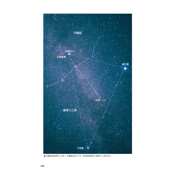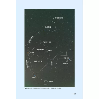 一年四季斗轉星移週而復始,利用星座和星座中的亮星,連接成四季星座幾何圖形,如春季正三角形、夏季直角三角形、秋季四邊形、冬季橢圓形、天上大弧線…等,既容易辨認且具有季節的代表性,圖鑑中描繪並介紹這種認星的好方法,方便記憶全天空的星圖。