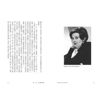 ◆書中詳介各領域典範人物的優雅典型,精選20餘幅精美照片呈現其優雅風格,如:好萊塢巨星卡萊‧葛倫和奧黛麗‧赫本、網壇天王費德勒、芭蕾女伶瑪歌‧芳婷、跳水皇帝盧甘尼斯、流行天后碧昂絲、《大亨小傳》主人翁蓋茨比、美國第一夫人艾蓮娜‧羅斯福、英國首相柴契爾夫人、奧斯卡影后凱特‧布蘭琪等。