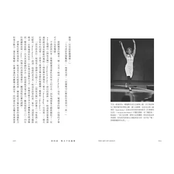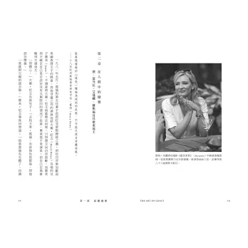 從好萊塢傳奇巨星卡萊.葛倫開始,一一列舉各界名人的優雅,如氣質女神奧黛麗‧赫本、網球名將費德勒、芭蕾女伶瑪歌.芳婷、兩小腿截肢的滑雪選手艾美‧帕迪等。還有,在不經意間瞥見優雅的驚豔感,如高檔餐廳的繁忙廚房、非必要但仍為之的友善之舉、脫衣舞孃從容圓融的人生姿態等,無論你對這些人或故事熟不熟悉,但那一個個迷人或出糗瞬間,盡顯各色優雅。