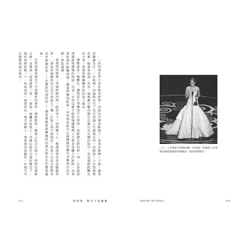 書中對肢體優雅和社交優雅的深刻思考發人深省。優雅,其實是民主的美好展現,人人皆能優雅。優雅不代表完美無瑕,而是存在於不完美之中,尤其當一個人能正視自己的缺點,面對意外能沉穩以對,並謹慎看待與處理時,所展現的正是最迷人的優雅風範。