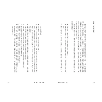 作者從歷史、流行文化、運動,乃至自家生活周遭,挖掘出種種感人的『優雅』片刻,化為優美文字呈現給讀者……她也提醒我們,即使處於一個大眾普遍低頭滑手機的時代,還是有人在說話之前會認真傾聽與思考,而且舉措優雅。