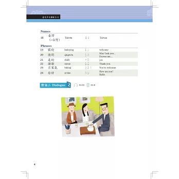 MTC is presenting this brand new core material after half a century’s worth of educational experience, and we have taken extra care to ensure it is of uncompromised quality. We were delighted to have American professors Claudia Ross, Jianhua Bai , and Yea-fen Chen act as consultants, Professor Teh-Ming Yeh from Taiwan, Professor Tao-chung Yao from the U.S., and Professor Xun Liu from China on the review committee, and professors Ying Cherry Li and Yung-O Biq of NTNU’s English department help with the respective translation of vocabulary and grammar points. The material was first trialed at MTC and other language centers around Taiwan for a year. The current version underwent numerous drafts, and materialized under the careful guidance of the consultants, a sedulous reading from the review committee, and feedback from teachers and students. As for the editorial process, we owe the greatest thanks to the indefatigable editorial team, the professors and their invaluable input, and the teachers and students who were willing to trial the book.