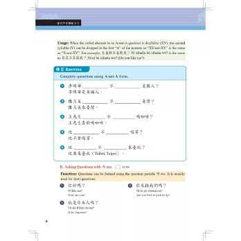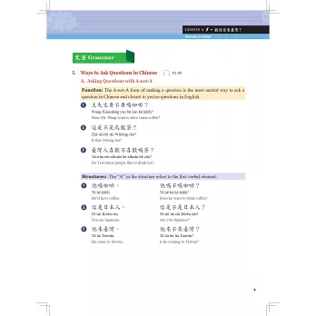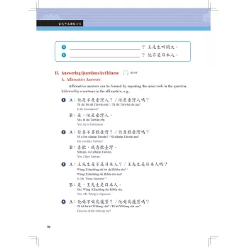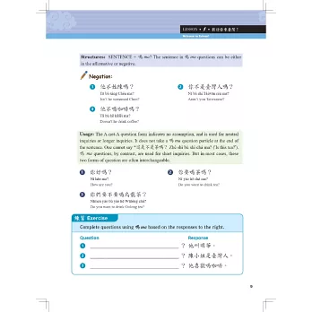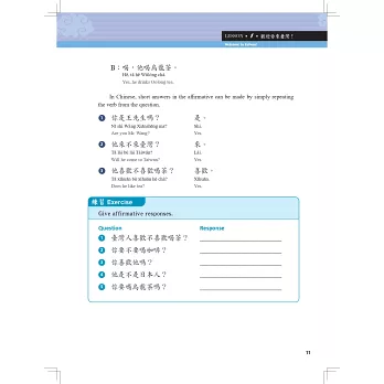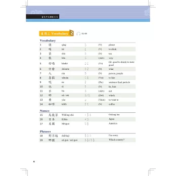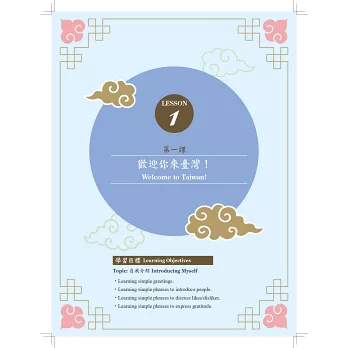 The field of L2 Chinese in Taiwan seems to have adopted the world-famous 'one child policy'. The complete set of currently used textbooks was born a generation ago, and until now has been without predecessor. We are happy to fill this vacancy, and with the title ‘number two’, yet we also aspire to have it be number two in name alone. After a generation, we present a slightly disciplined contemporary language as observed in Taiwan, we employ Hanyu Pinyin without having to justify it cautiously and timidly, we are proud to present a brand-new system of Chinese parts of speech that will hopefully eliminate many instances of error, we have devised two kinds of exercises in our series, one basically structural and the other entirely task-based, each serving its own intended function, and finally we have included in each lesson a special aspect of Chinese culture.