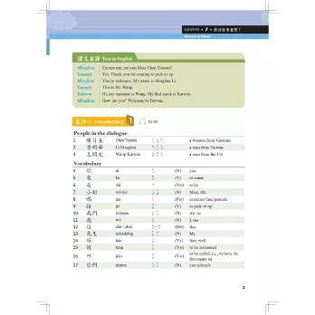 這是本中心歷經數十年深厚教學經驗後再次開發的全新主教材,更為了確保品質,特別慎重;我們很榮幸地邀請到美國的Claudia Ross教授、白建華教授及陳雅芬教授,擔任顧問,也邀請了臺灣的葉德明教授、美國的姚道中教授及大陸的劉珣教授,擔任審查委員,並由本校英語系李櫻教授和畢永峨教授分別協助生詞和語法的翻譯。此教材在本中心及臺灣其他語言中心,進行了一年多的試用;經過顧問的悉心指導、審查委員的仔細批閱,並參考了老師及學生提出的寶貴意見,再由編寫老師做了多次修改,才將版本定稿。對於所有在編寫過程中,努力不懈的編輯團隊、給予指教的教授、配合試用的老師及學生,我們都要致上最高的謝意。