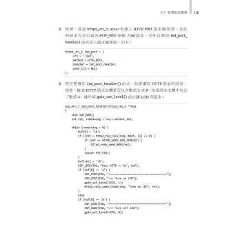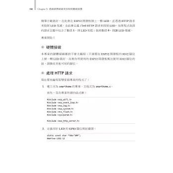 聚焦於如何讓ESP32程式與Android手機app兩者以Wi-Fi通訊協定作為媒介來互動。藉由這個方式,你就能透過Android app控制ESP32板子上的某些感測器與致動裝置。