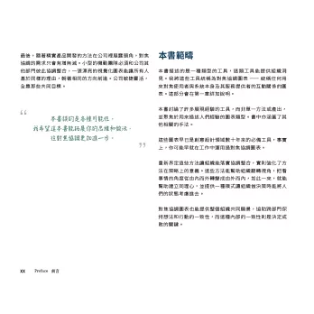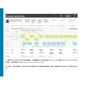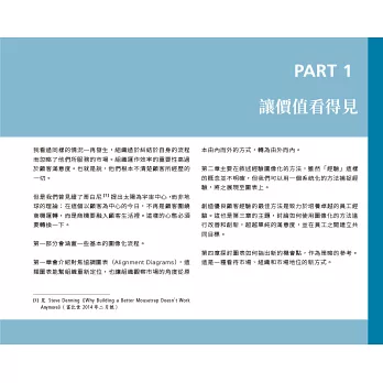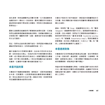 「Kalbach為顧客導向的視覺化工具點了一盞明燈,並提供讀者實用的指南,讓大家都可以自行操作這些工具。」 — Kerry Bodine,《Outside In: The Power of Putting Customers at the Center of Your Business》共同作者