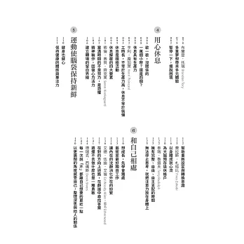 別怕把時間空下來,隨著身心境的轉變,自然地放下不需要的人事物,專注在每一個當下的擁有,享受每一個微小卻具體的幸福。讓身心重新歸零,珍惜無所事事、微小簡樸的空白時間。