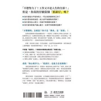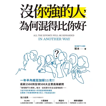 這些視角、告誡與見解,正是讓毅冰能夠在五百大企業裡,立下「一年半加薪十一次」超狂紀錄的職場心法。而他期盼藉由這些分享,讓大家少走一些彎路、找回「核心競爭力」,從此脫離「低薪仔」的苦命,含金量大爆衝!