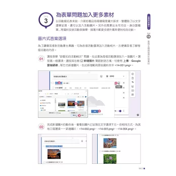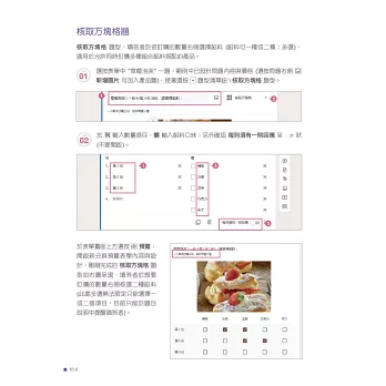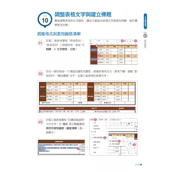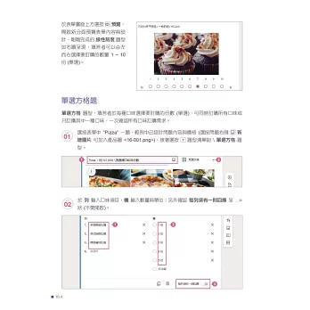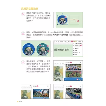 每個主題皆有完成的範例展示、重點說明、操作技巧、實作步驟,