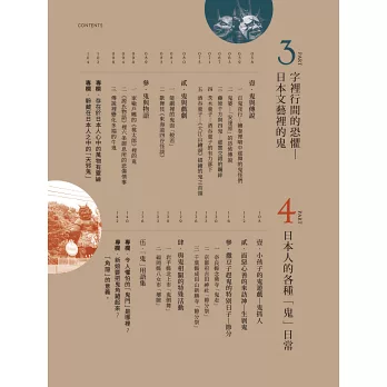 一說到「鬼」,大部分人浮現腦海的是《七夜怪談》的貞子、《怪談》、講100個鬼故事就會發生恐怖事情的《百物語》,但日本人所說的「鬼おに」,原來跟我們想的不一樣!日本鬼是頭上長角、兇面獠牙,像是羅煞、夜叉,如果你還被幽靈、鬼、妖怪這幾個名詞搞得頭昏腦脹,趕快打開這本書,讓你懂鬼同時學習日文。