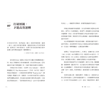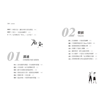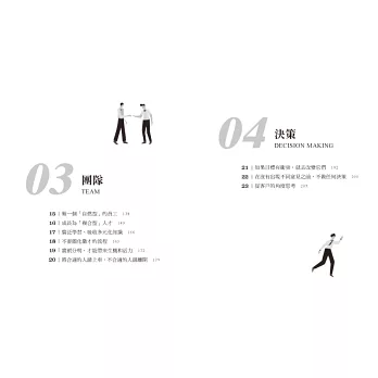本書分為溝通、文化篇、團隊篇、決策篇、創新篇、成長篇六大部分,全面解析全球精英人士都在使用的工作方法和習慣,且章節後附有小測試、小練習、小知識、小思考等板塊,助你認清自我能力,順利晉級職場精英。