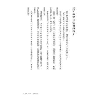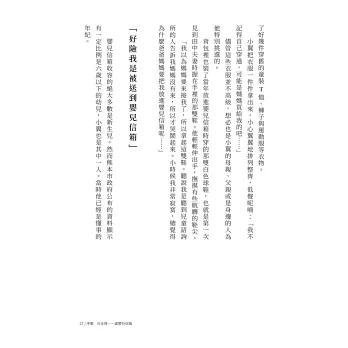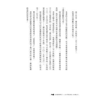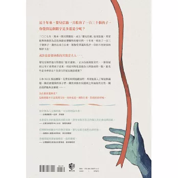 日本的「嬰兒信箱」,代表什麼樣的人權保障理念?在一個超高齡社會,新生命的降臨本應伴隨無限祝福,卻因難以啟齒的不得已, 讓一個母親丟棄孩子?!本書從「生命的拋棄與拯救」出發,探究每個「不得已」的個人及社會結構因素,隨而傾聽孩子從被丟棄,到機構安置、寄養收養,在自我認同到身分確認間的無助吶喊。「嬰兒信箱」本應提供棄嬰的「社會搖籃」,褪去汙名化,給孩子幸福成長的機會,實則有諸多困難!本書用最真實的生命故事,佐以理性的分析、感性的筆觸,省思並且展望「嬰兒信箱」的存在必要與優化可能。