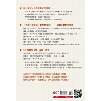 本書還有更多間歇閱讀法的具體細節和讀書的十大策略,