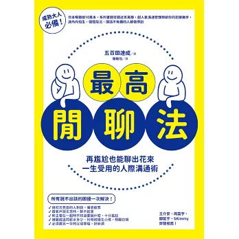 就讓本書帶你有技巧地面對不得不尬聊的情境,無論工作或私生活都能輕鬆與人相處,跟誰都能建立信賴關係。
