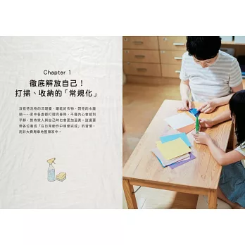 而最有效的方法就是達到一定程度的「常規化」。如果每次做家事之前都得動腦思考,那實在太讓人疲憊了,所以事前決定好打掃、整理、做飯還有時間運用的方法,就能夠擺脫「我剛剛有做成那件事了嗎?」、「等一下還要做些什麼」等等煩惱,增加身心自由的時間。