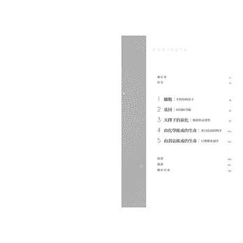 我們生活在一個廣闊而令人敬畏的宇宙中,但在這個更大整體中的微小角落裡繁衍的生命,是最迷人和最神祕的一個部分。本書中的五個概念將如同我們將要前進的步驟一樣,逐步揭示定義地球生命的原則。這也將幫助我們思考,我們星球上的生命或許最初是怎麼開始的,還有如果我們是在宇宙他處遇見生命,生命會是什麼模樣。不論你的起點在哪,甚至你認為自己對科學所知甚少或一無所知都沒關係,我希望你看完這本書後,更加了解你、我、那隻精巧的蝴蝶,以及我們星球上所有的事物,是如何彼此緊緊扣連。