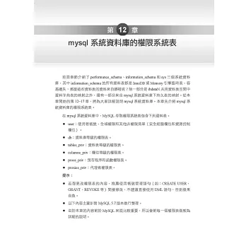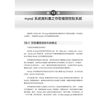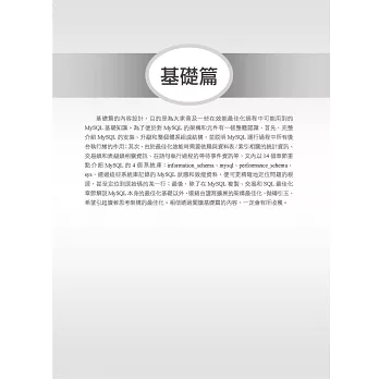 從理論基礎和基本原理層面介紹了 MySQL 的安裝與設定、升級和架構,information_schema、sys_schema、performance_schema 和 mysql_schema,MySQL複製、MySQL 交易、SQL 語句最佳化及架構設計基礎知識。