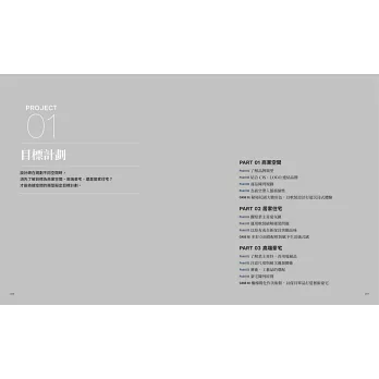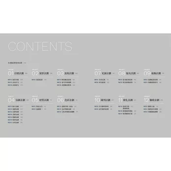 本書區分為目標、預算、流程、氛圍、材質、色彩、光源、