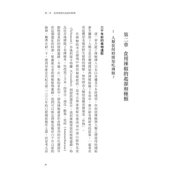 辣椒是我們日常生活中不可或缺的辛香料,乾辣椒、泡椒、小米椒、花椒、朝天椒……多不勝數,且每一道菜餚幾乎都能找到對應的辣椒種類,才能烹調出最道地可口的料理。就像每天來一杯振奮精神、香氣宜人的咖啡一樣,我們會依照產地、焙度挑選適合的咖啡豆;而了解辣椒的起源、種類與世界各地不同的烹調方式,對愛吃辣的你而言,更是增加生活趣味的新途徑。在本書,你可以了解許多與辣椒有關的豐富科學知識: