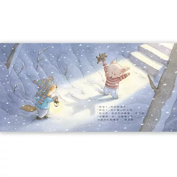 阿布想要做出「全世界最好吃的鬆餅」,當成他跟阿尼的聖誕大餐。但是家裡沒有蜂蜜了,阿布覺得很苦惱。不想讓阿布失望的阿尼,在下雪天穿過森林到山下的小村子買蜂蜜,隨著風雪越來越大、天也快黑了,阿布開始擔心起一直沒回家的阿尼……阿尼遇到什麼事情了呢?他們能順利吃到全世界最好吃的鬆餅嗎?