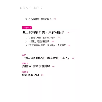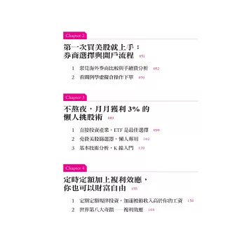 Donna在這本書所分享的每一個章節,對於想接觸美股的你,都是最務實的SOP步驟。她個人如何從零到現在實現自己人生夢想的過程,值得你參考學習,也相信對你能產生極大的鼓勵。