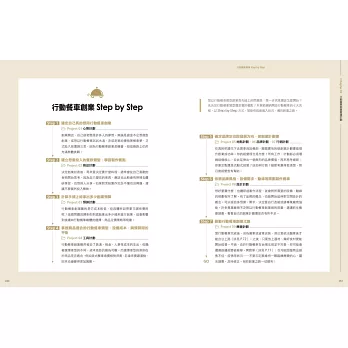 ◎將創業過程拆解為「心態」、「商品」、「預算」、「工具」、「地點」、「品牌」、「行銷」、「設計」、「應變」共9大計劃,每個環節細細拆解分析,讓創業者能一一照著做,全方位掌握行動餐車創業與營運細節。
