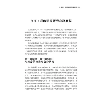 我自己在即將寫完這個自序的時候發現這些年的確發表了不少書籍和文章。但是學術方面的書籍與文章大多經過同行的評審,即使小部分沒有經過評審的書籍與文章也經過編輯的審閱。所以說自己這些學術思考的積累,也是這些同行與編輯幫助的結果,也是他(她)們的成果,而不是我一個人的成果,況且很多著作本來就是合作的結果。