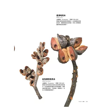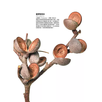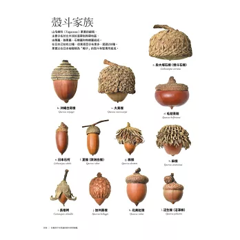 應該有滿多像這樣因地域、環境或季節不同而出現在我們腦海中的樹木果實吧!按字面意義,「樹木果實」是指樹木所結、裡面包含種子的果實,但本書要介紹的是乾燥後可以輕鬆收藏,或因木質化不易腐壞而以廣義範圍來定義的果實。因此,某些章節可能只介紹果實木質化的部分或種子。我們也沒有特別侷限於樹木,部分木質化草籽也在介紹之列,但本書排除比較不好保存的水果類。