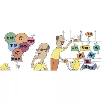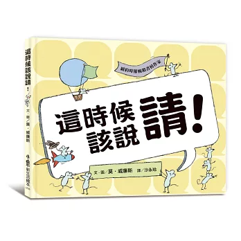 節奏輕快的俏皮故事引導孩子跟著小老鼠遊行隊伍學禮貌。明確簡潔的文本被設計成五彩繽紛的美麗標語,伴隨著精心安排的問題情境,溫和的提醒孩子適當的使用「請」、「謝謝」、「對不起」等。關於禮貌的繪本比比皆是,《這時候該說請!》絕對是本深入淺出,吸引幼兒注意力,且兼具幽默與美感經驗的上乘佳作。――葉嘉青╱臺灣師範大學講師暨臺灣閱讀協會常務理事