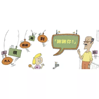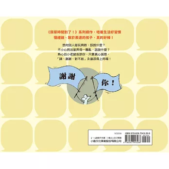 當孩子學會說話後,卻常因生活經驗不足,而無法拿捏講話的時機或內容。透過書中的情節,讓孩子學習正確的表達「請、謝謝、對不起」,一起體驗不同的場合如何表現正確的言行舉止,培養孩子成為一個有禮貌、受歡迎的人,進而體認有禮貌是令自己和別人都開心的一件事。