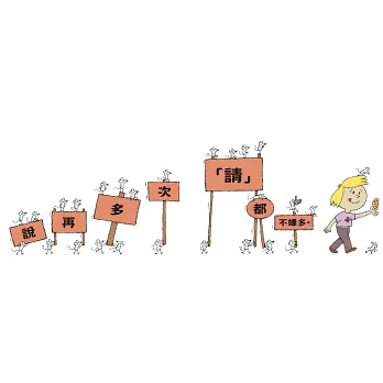 作者幽默地告訴小讀者,人們總是無法抗拒說「請」這個詞,並藉由一群老鼠循序漸進不斷引導,不只說「請」,「謝謝」、「對不起」、「不好意思」也是生活中必備的句子。本書提供父母有趣多樣的方式,帶孩子從小做個有禮貌的人,轉個彎,說不定就能輕鬆達到生活教育的目的。多多說請絕對有益!