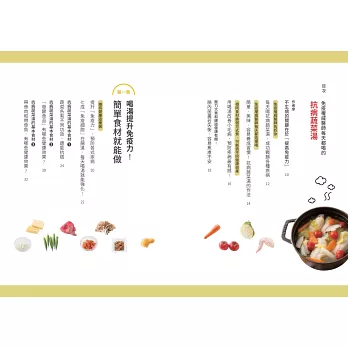 除了「抗病蔬菜湯」,書中還有許多對症湯品,能緩解各種小毛病,像是:
