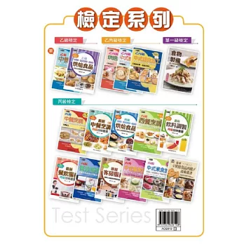 (一)應檢篇:引自技能檢定中心最新參考資料,包括應考須知、評分標準,提醒您參與考試的注意事項,做最好的準備。