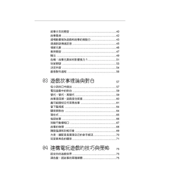 ● 不只教你 how-to,也告訴你 how-come:將紮實的說故事技巧帶入遊戲空間,從各個角度準確關注當今遊戲設計和寫作的挑戰與陷阱, 沒有比這更直截了當又用上真實案例的書了。