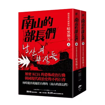 作者所指的南山的暗黑勢力,指的就是繞在朴正熙一手成立的中央情報部的幾個部長們。本書分兩部十二章,細數一九六一年朴正熙革命奪權封重臣,和各個南山部長的種種暴行、作威作福、勾當和彼此之間的競爭;一路寫到刺殺後的一九八○年八月原保安司令全斗煥的竄起。